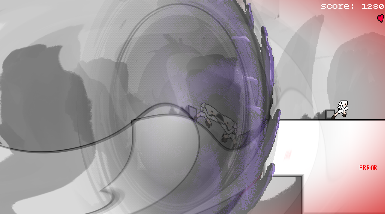 Help Ion escape the Realityrazer by jumping through different worlds while keeping up her speed! Survive as long as you can while collecting hearts and spacial clumps along the way to help achieve your best score. Warning: this game is kind of difficult, haha